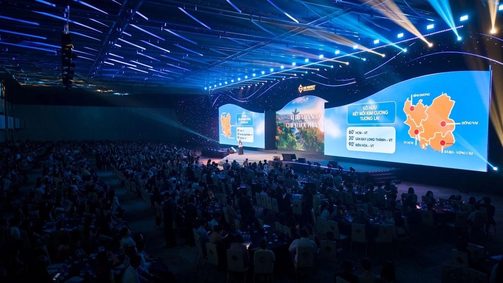 Gần 2.000 nhà đầu tư, khách hàng tiềm năng và chuyên viên kinh doanh ở TP HCM, các tỉnh lân cận lấp kín khán phòng trung tâm hội nghị Thiskyhall, TP Thủ Đức. Từ đại sảnh đến không gian hội nghị được thiết kế theo ý tưởng \"thành phố tinh khôi\" - tái hiện hình ảnh đô thị biển Cap Saint Jacques (tên gọi của tiếng Pháp của thành phố Vũng Tàu một thời). Thiết kế trung tâm sảnh sự kiện lấy cảm hứng từ đại dương cùng với những loài sinh vật biển đa dạng và sắc xanh nổi bật, phác họa nên khung cảnh đa tầng.